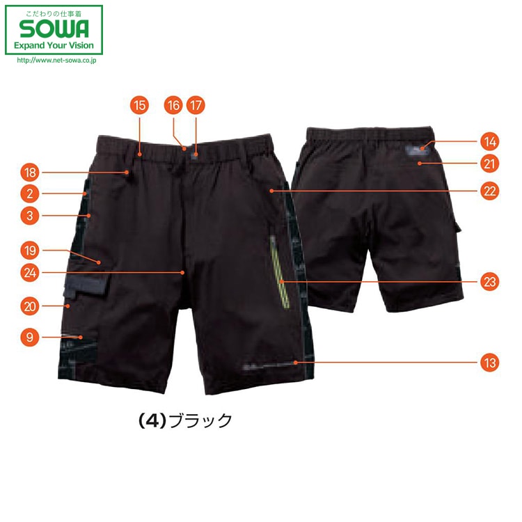 SOWA ソーワ 桑和 0648-17 ハーフパンツ(ノータック) S M L LL 3L 4L オールシーズン対応ワークウェア 作業着 作業服 セール中!!