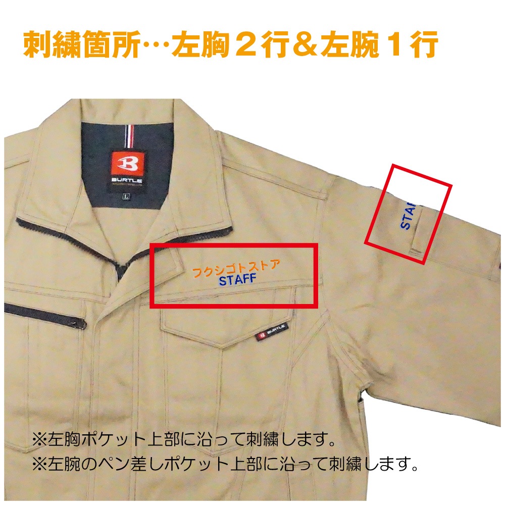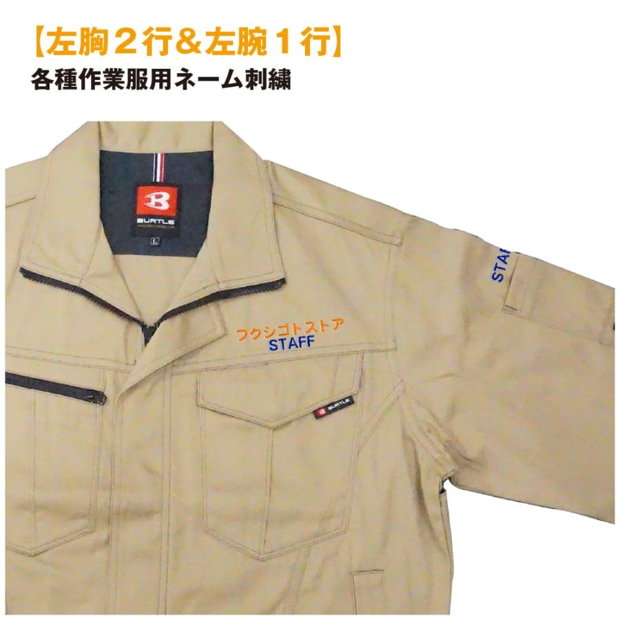 【左胸2行&左腕】 各種作業服用ネーム刺繍【※作業服同時購入の方のみご注文可能です。※備考欄に必ず刺繍文字の記載をお願い致します。ネーム刺繍可能な商品か今一度ご確認ください】