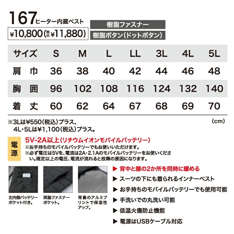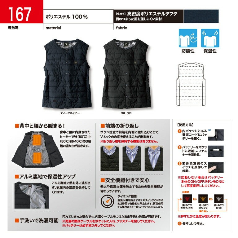 【特価!】XEBEC 167 ジーベック ヒーター内蔵ベスト