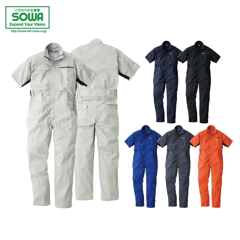 SOWA 39017 半袖つなぎ S M L LL 3L 4L 6L 【 作業着 作業服 桑和 ソーワ 小さめサイズ 普通サイズ 大きめサイズ ポリ綿 ツナギ 】