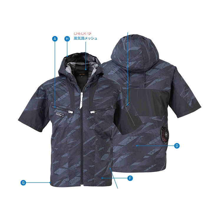 ビッグボーン EBA5018AK 半袖フーディージャケット S M L LL EL 4L 5L 【 作業着 作業服 bigborn】