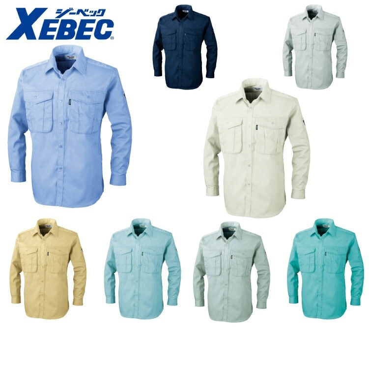 XEBEC ジーベック1293 プリーツロンミニ長袖シャツ S M L LL 3L 4L 5L オールシーズン対応ワークウェア 作業着 作業服 セール中!! ポリ綿 制電素材