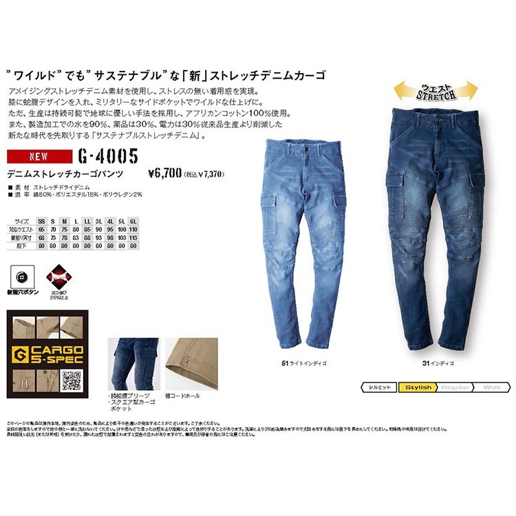 | 《サイズ》SS S M L LL 3L 4L 5L 6L 《カラー》インディゴ ライトIND ご注意点 ・お使いのPCモニターによって、カラー表現が変わって見える場合がございます。 ・万が一弊社在庫分に、不良や欠品があった場合は、メーカー取り寄せとなり納期が変更となる場合がございます。 ・在庫切れにより商品のご用意が難しい場合は、別途ご連絡致しますので予めご了承くださいますようお願い致します。 おしゃれ人気のワークウェア 半袖や長袖のバリエーションが豊富 ズボン・パンツ・ベルトなどなど 。お気に入りの商品を多数ご用意!! BURTLE(バートル)、桑和(SOWA)、自重堂、AITOZ(アイトス)、TSDesign、EVENRIVER、ATACKBACE、空調服・防寒・エアークラフト・春夏対応・秋冬対応など多数取り揃えております。 お届けについて ご注文確認後、2~5営業日で出荷致します。 お届け日のご要望がある場合は、お電話・メールにてお気軽にご相談ください。 出来る限りご対応致します。 ご注意点 ・お使いのPCモニターによって、カラー表現が変わって見える場合がございます。 ・万が一弊社在庫分に、不良や欠品があった場合は、メーカー取り寄せとなり納期が変更となる場合がございます。 ・在庫切れにより商品のご用意が難しい場合は、別途ご連絡致しますので予めご了承くださいますようお願い致します。 |